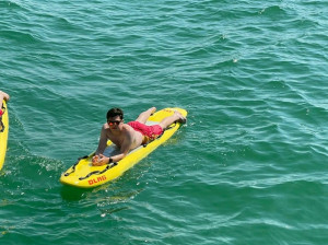 Bei besten Wetter sorgte er für Sicherheit am Strand, hatte ein paar kleinere Einsätze und konnte sich ansonsten bei Übungen in der Ostsee abkühlen.