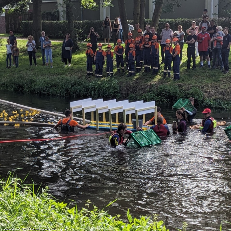 Und da sind die Enten ... und werden ALLE von uns wieder eingesammelt ;-) Danke an die Jugend der Feuerwehr Weeze für die Unterstützung mit der errichteten Barriere zum stoppen der Enten.