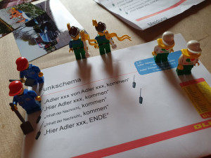 Aufgaben warnen u. A. das beschreiben und nachbauen eines Objektes unter Einhaltung der Funkdisziplin und eine „Personensuche“ mittels genauer „Männchenbeschreibung“.