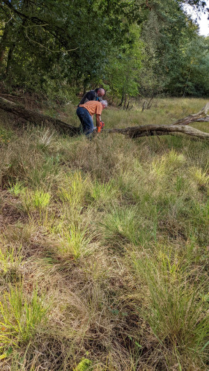 Am Samstag waren wir wieder im Naturschutzgebiet Haart-Veen unterwegs! Zur Erhaltung des dortigen Moores, haben wir ungewollten Bewuchs entfernt. Neben einigen Birken sollte musste auch eine umgestürzte Eiche, welche mit einem Teil ins Moor ragte, entsprechend klein gesägt und das Holz bei seite geschafft werden. Nebenbei haben wir noch etwas die generelle Vegetation mit dem Freischneider zurückgeschnitten und aus dem Moor entfernt. Alles in allem ein gelungener Tag mit dem guten Gefühl am Ende etwas gutes für die Natur getan zu haben.