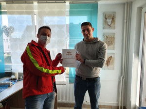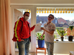 Trotz der digitalen Version der Versammlung wurden auch einige langjährige Mitglieder geehrt und dafür vorab zuhause "besucht". Einige Jubilare wünschten sich die Übergabe aufs nächste Jahr zu verschieben. Dann hoffentlich wieder im großen Rahmen.