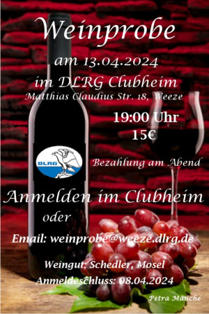 Anmeldung bei Spond, im Clubheim oder unter weinprobe@weeze.dlrg.de