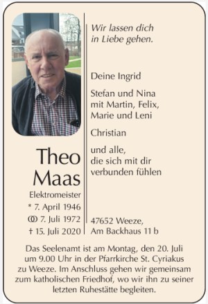Leider erreichte uns die Nachricht, dass diese Woche unser langjähriges Mitglied Theo Maas im Alter von 74 Jahren verstorben ist.